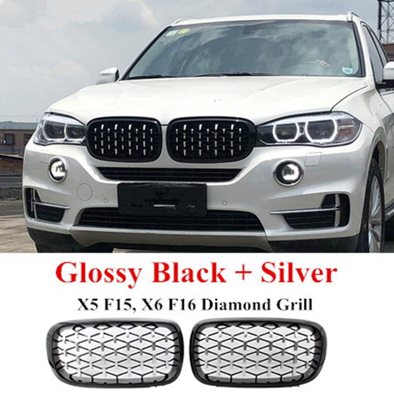Diamond Style ABS Front Racing Grille For-BMW X5 X6 F15 F16 F85 F86 Silver+Black