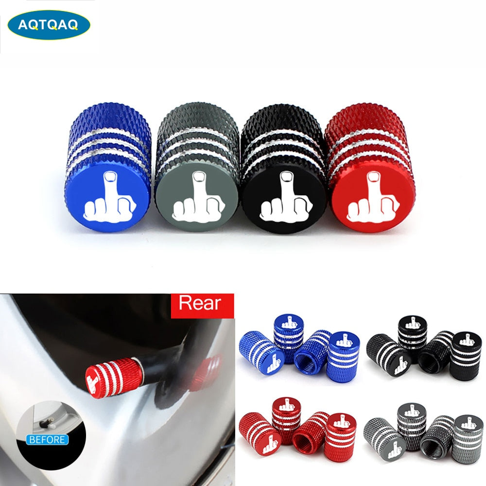4Pcs/Set Middle Finger Tire Stem Valve Caps Aluminum Car Dustproof Caps Tire Wheel Stem Air Valve Caps